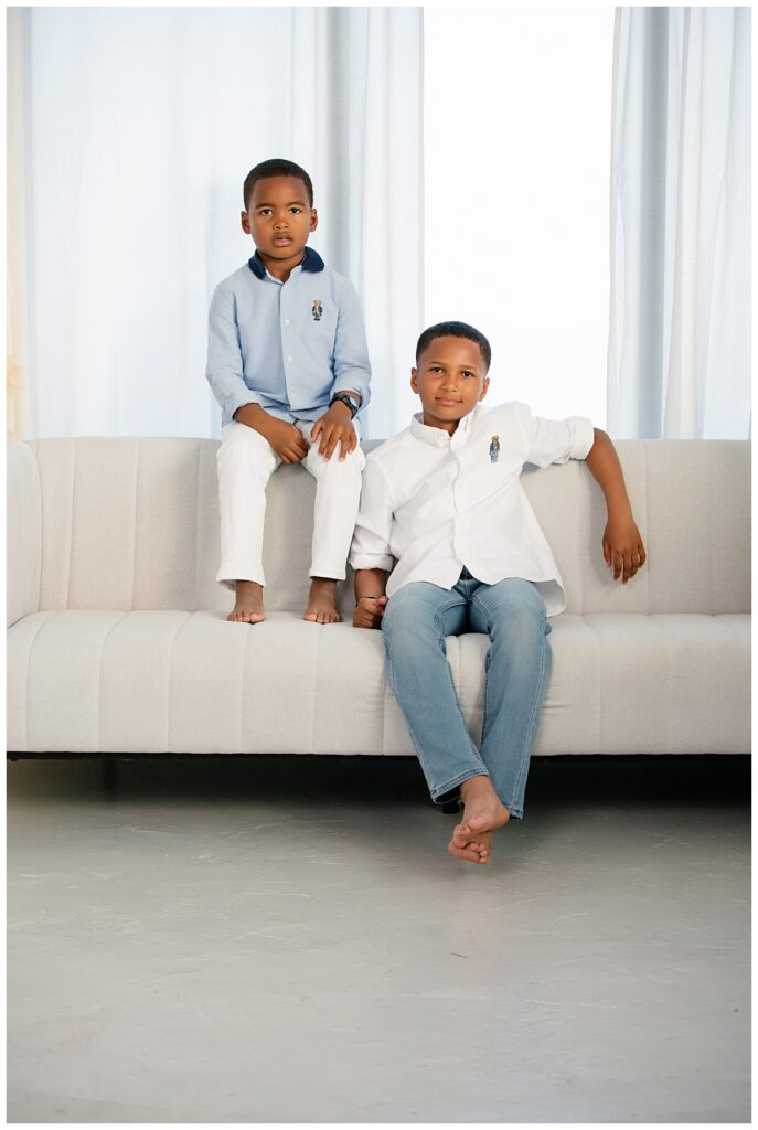 We started off with a relaxed and coordinated look in blue and white denim. The light poured in just right, highlighting the natural bond they shared. There was laughter a few spontaneous moments that made the images feel effortless and true to who they are.