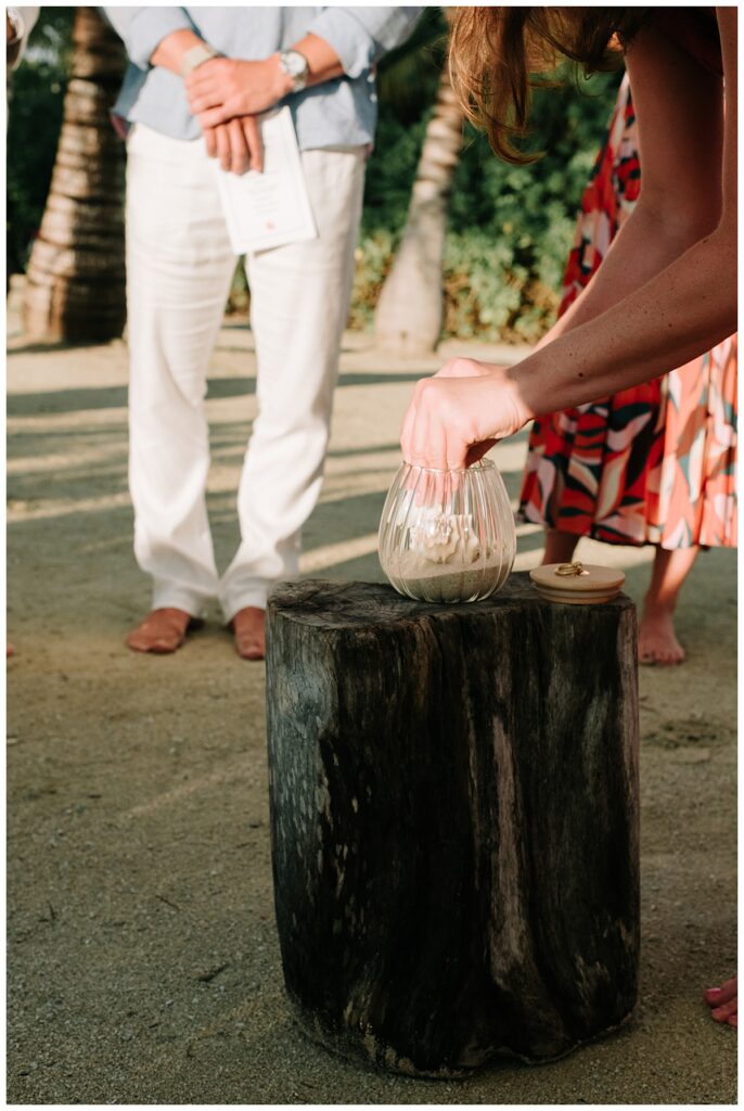As the sun softened into gold, the ceremony began, officiated by the groom’s father. It was intimate and deeply personal; vows carried on the breeze, waves offering a gentle rhythm underneath every word. With family looking on and light wrapping around them, it was everything a Bahamian sunset ceremony should be: warm, sincere, unforgettable. Guests were invited to take part in a wishing ceremony—placing a shell into a vessel while speaking a wish for the couple. One by one, blessings gathered like tide-washed treasures. Winter captured the movement of hands, the smiles, and the small, glistening details that make a tradition feel timeless.